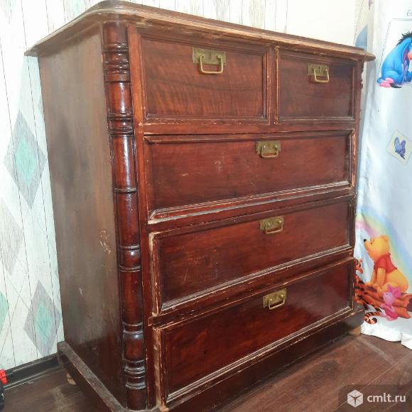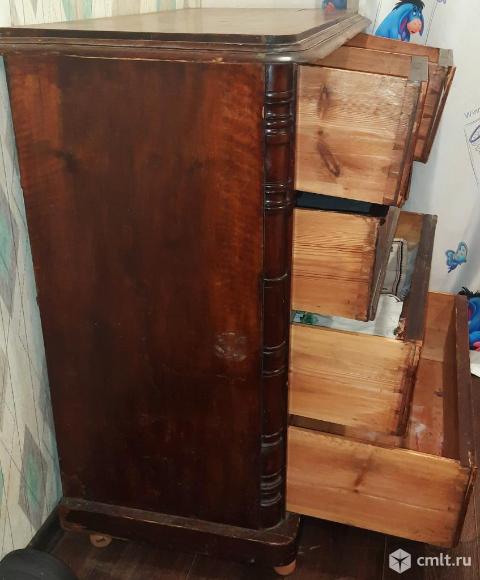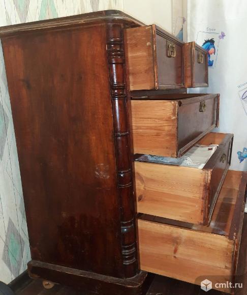 Дореволюционный комод( ориентировочно 1915 года выпуска)из натурального дерева (даже внутренние стенки выдвижных ящиков). Полностью исправен: ящики выдвигаются-задвигаются. Минус один: "родные" деревянные ножки сломались. Прибили-приклеили шарики из натурального дерева.