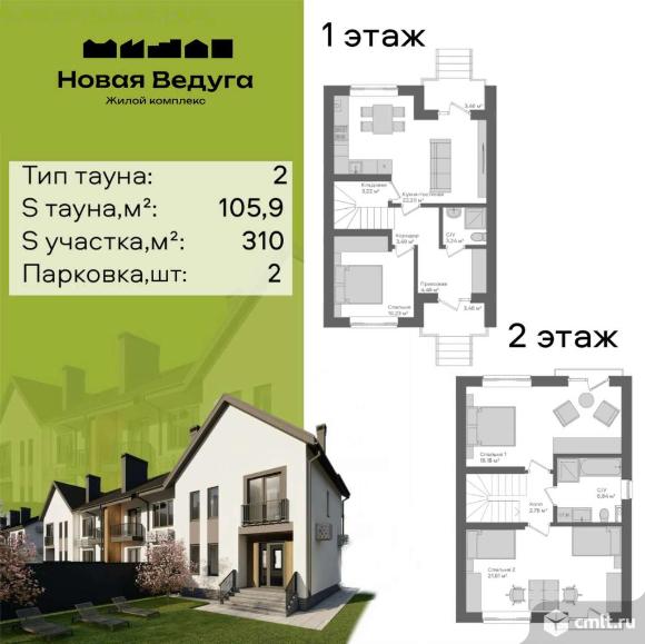 Просторный таунхаус 105,9 кв.м с земельным участком 310 кв.м в ЖК «Новая Ведуга» идеален для семьи.