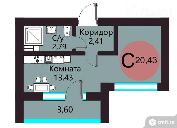 1-комнатная квартира 20,43 кв.м