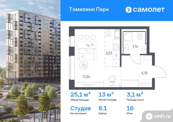 Предлагается квартира студия комфорт-класса 25,1 кв.м в корпусе 6.1 на 16 этаже, в ЖК «Томилино Парк»