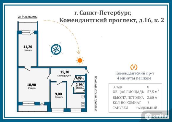 Продается двухсторонняя трехкомнатная квартира с двумя лоджиями в 4 минутах от метро Комендантский проспект — идеальный вариант для семьи, инвестиций или под сдачу в аренду!