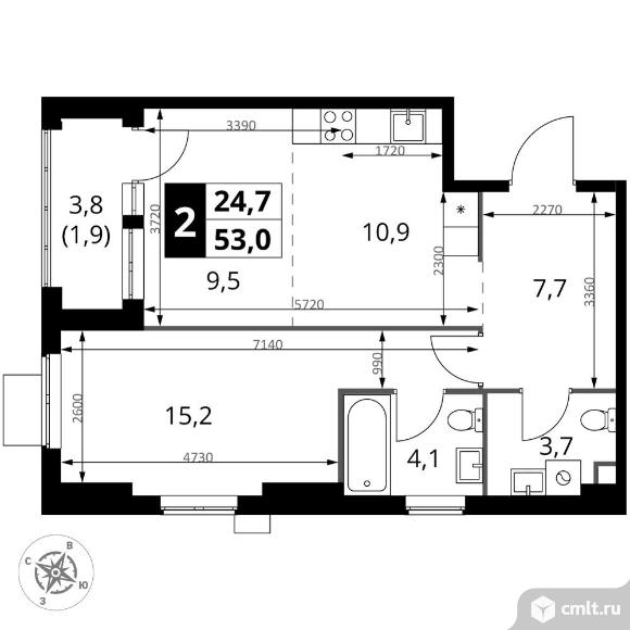 2-комнатная квартира 53 кв.м