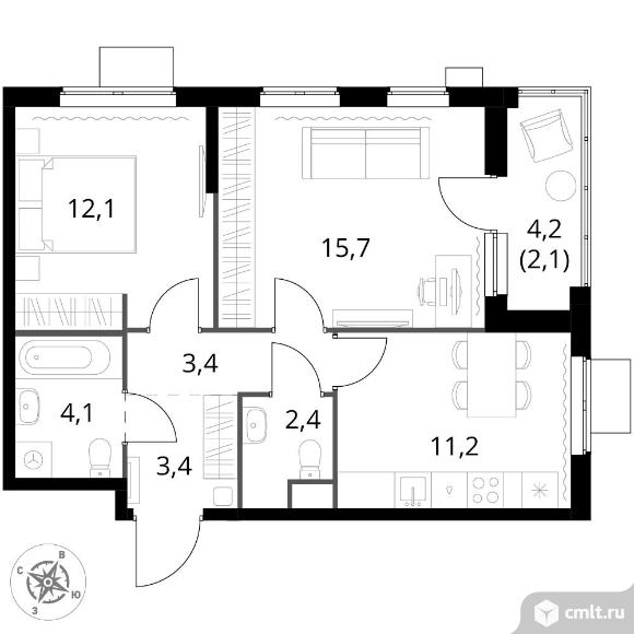 2-комнатная квартира 54,4 кв.м