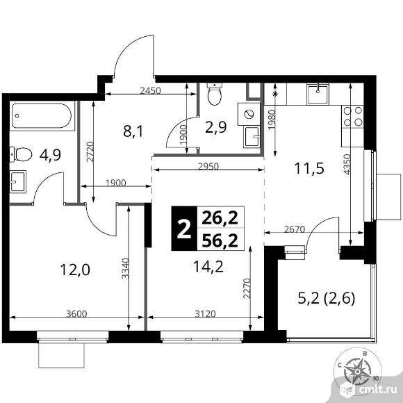 2-комнатная квартира 56,2 кв.м