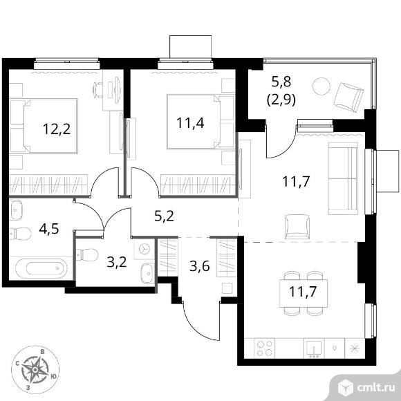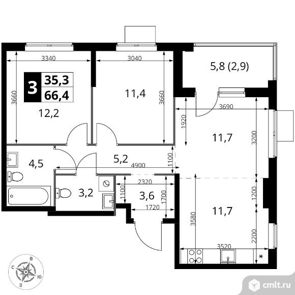 3-комнатная квартира 66,4 кв.м
