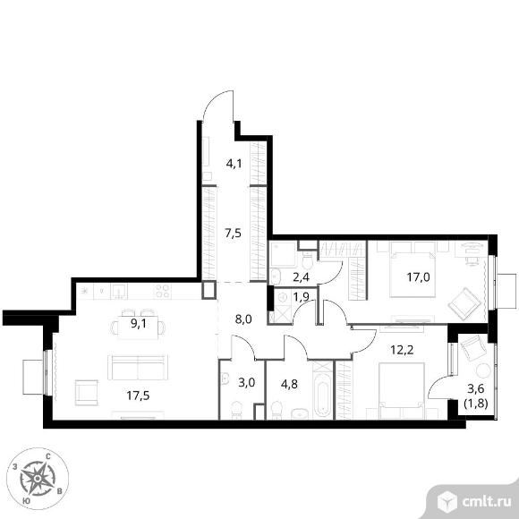 3-комнатная квартира 89,3 кв.м