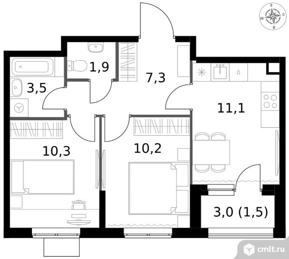 2-комнатная квартира 45,8 кв.м