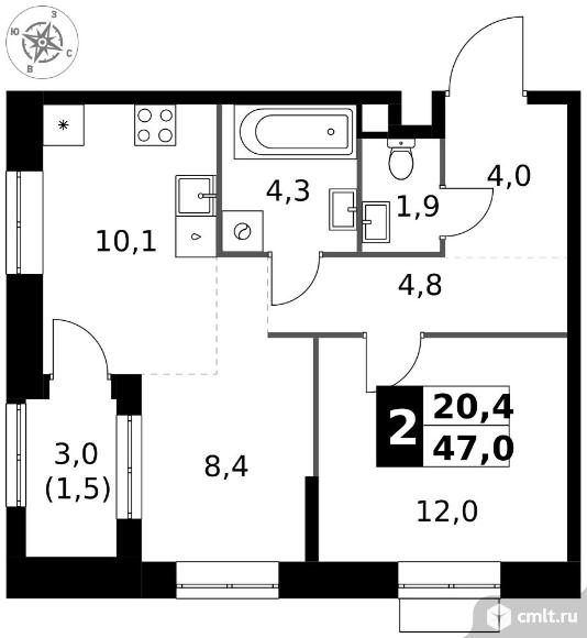 2-комнатная квартира 47 кв.м