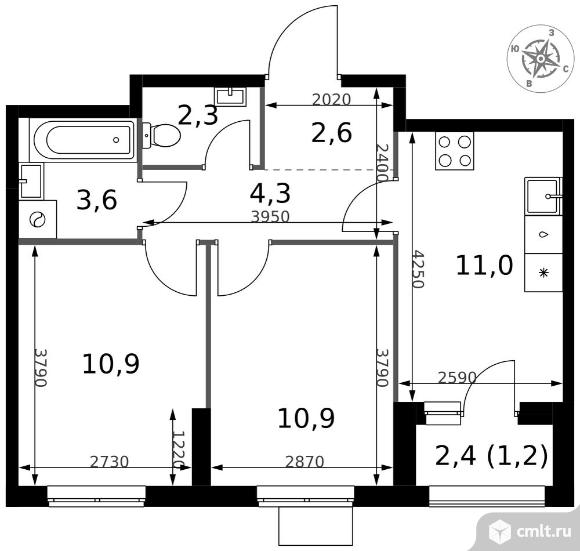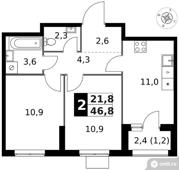 2-комнатная квартира 46,8 кв.м