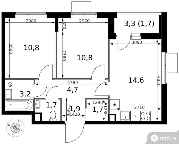 Перейти к актуальным объявлениям рубрики Квартиры. 2-комнатная квартира 51,1 кв.м