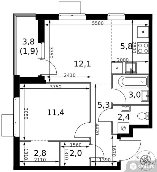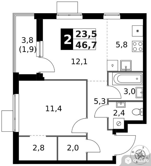 Перейти к актуальным объявлениям рубрики Квартиры. 2-комнатная квартира 46,7 кв.м