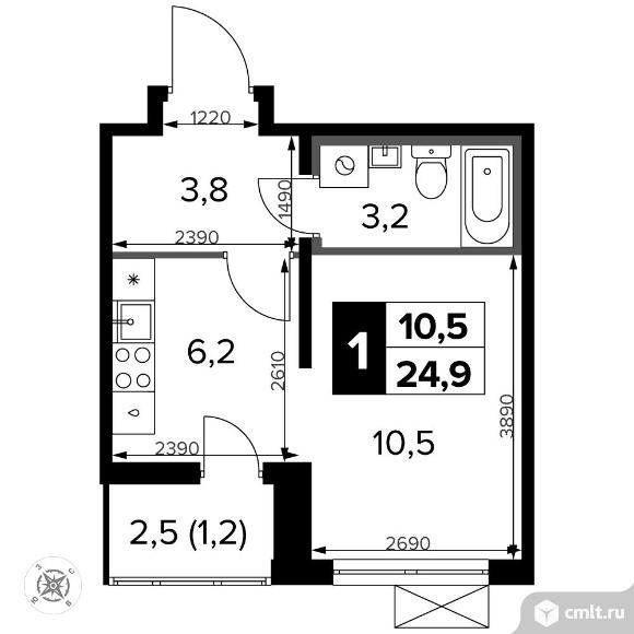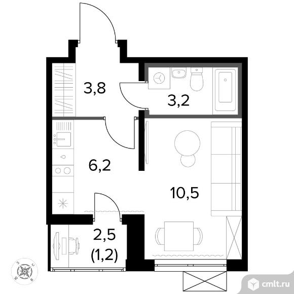 1-комнатная квартира 25,2 кв.м