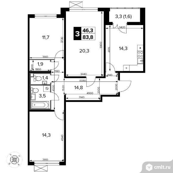 3-комнатная квартира 84,1 кв.м