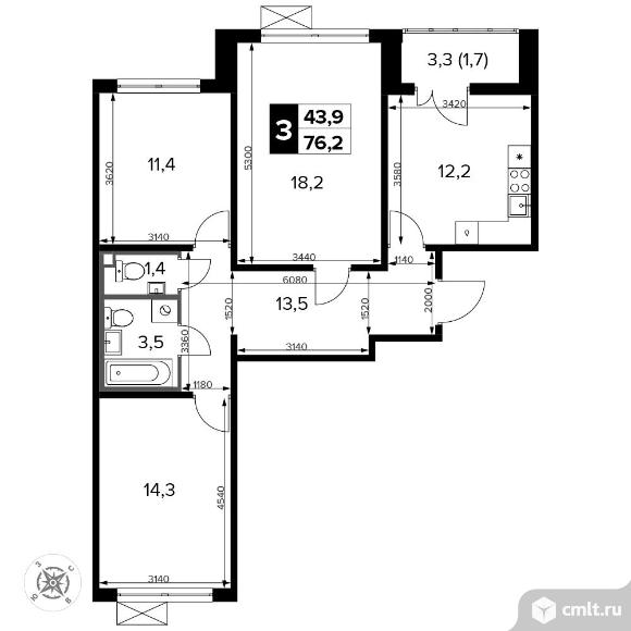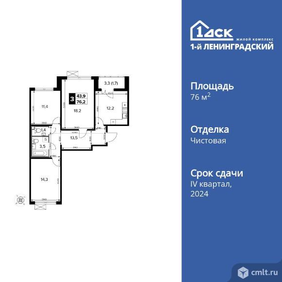 Перейти к актуальным объявлениям рубрики Квартиры. 3-комнатная квартира 76,4 кв.м