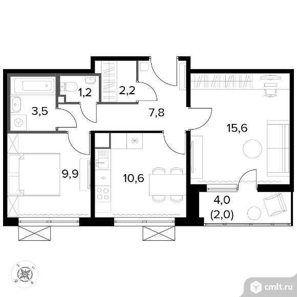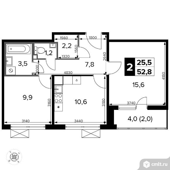 2-комнатная квартира 53,2 кв.м
