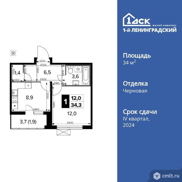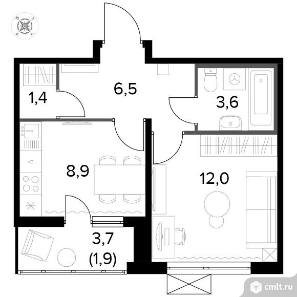1-комнатная квартира 34,2 кв.м