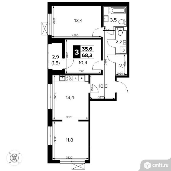 3-комнатная квартира 68,4 кв.м