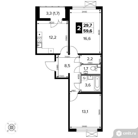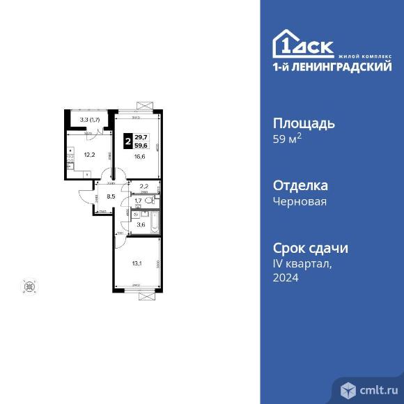 2-комнатная квартира 59,6 кв.м