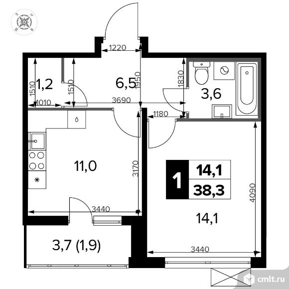 1-комнатная квартира 38,4 кв.м