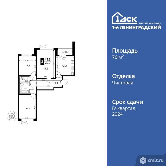 3-комнатная квартира 76,2 кв.м