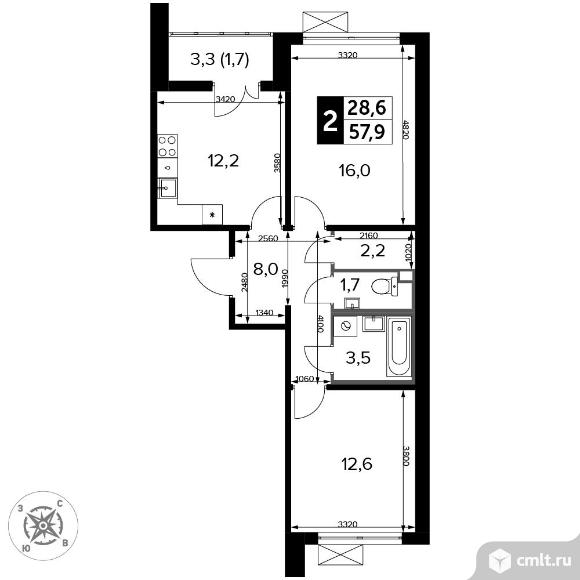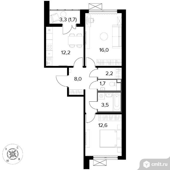 2-комнатная квартира 57,9 кв.м
