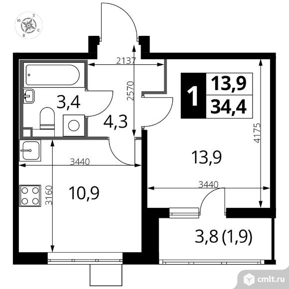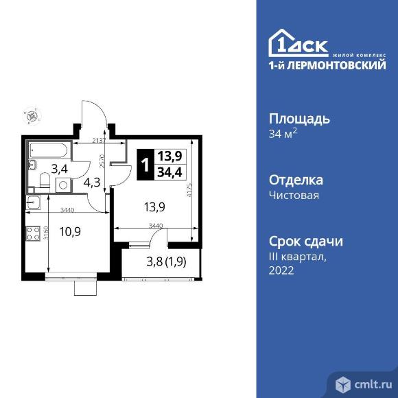Перейти к актуальным объявлениям рубрики Квартиры. 1-комнатная квартира 34,2 кв.м