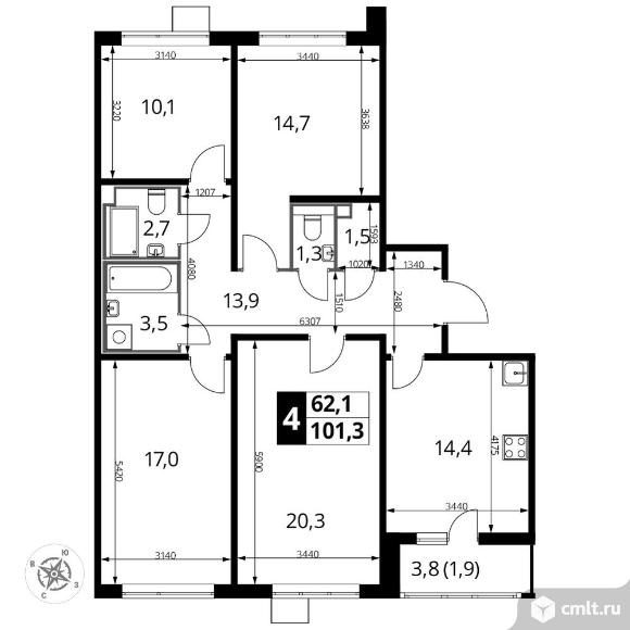 Перейти к актуальным объявлениям рубрики Квартиры. 4-комнатная квартира 101 кв.м