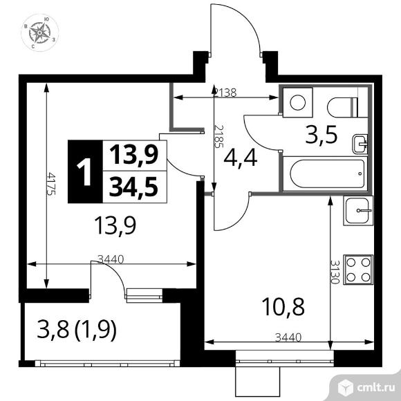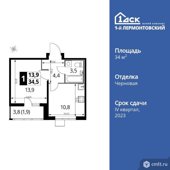 Перейти к актуальным объявлениям рубрики Квартиры. 1-комнатная квартира 34,3 кв.м