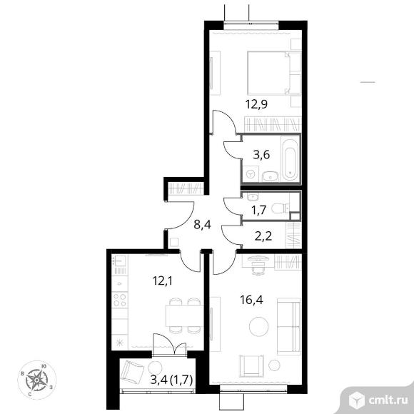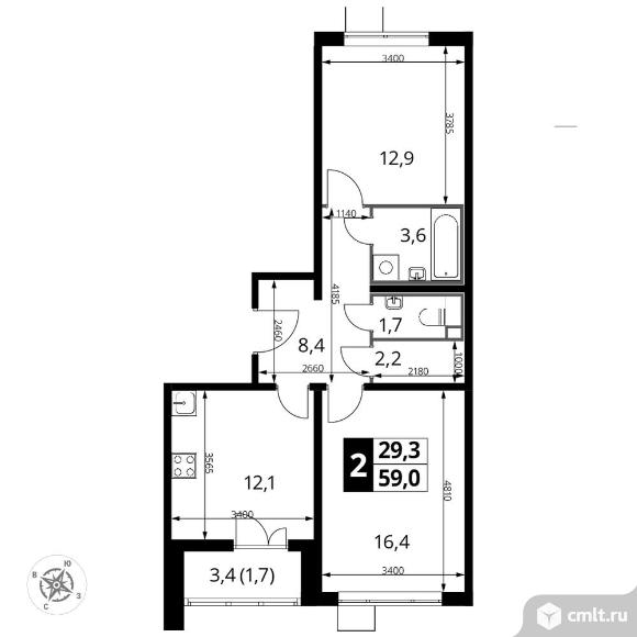 Перейти к актуальным объявлениям рубрики Квартиры. 2-комнатная квартира 59,2 кв.м