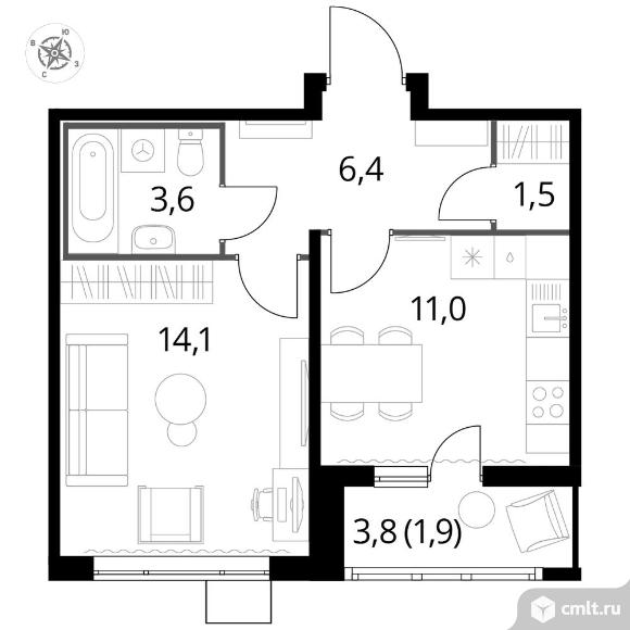 Перейти к актуальным объявлениям рубрики Квартиры. 1-комнатная квартира 38,2 кв.м
