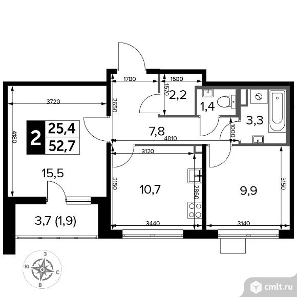 2-комнатная квартира 52,7 кв.м