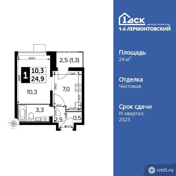 Жилой Комплекс класса Комфорт Плюс. Продаётся 1-к квартира номер 231 общей площадью 24.7 кв.м. на 10-м этаже 24 этажного дома. Чистовая отделка. Особенности квартиры: - Линейная планировка - максимальная функциональность и удобство. - Увеличенное количество окон - дополнительное освещение и свежий воздух. - Ниша под шкаф - компактное и удобное место для вещей. - Лоджия - уютное место для отдыха и тишины. Информация о комплексе: Ощущение уютного дома должно начинаться с подъезда. Мы постарались предусмотреть все нюансы, чтобы наши лифты отвечали самым строгим современным требованиям. Двор без машин, закрытое, безопасное, охраняемое место с удобным доступом для вашего авто, более чистый воздух и гарантированное место для стоянки - и это далеко не преимущества наличия подземного паркинга. А наличие кладовых позволит вам поддерживать идеальный порядок и уют в вашей квартире! «1-й Лермонтовский» расположился недалеко от уже сложившегося зеленого окружения - Люберецкого парка и Жулебинского лесопарка, переходящего в природно - исторический парк «Кузьминки». Если вы предпочитаете активный семейный отдых на свежем воздухе - в округе мест для него предостаточно. С востока он граничит со столичным районом Некрасовка. С северной стороны - с развитым современным микрорайоном «Красная Горка». Удачное расположение дарит жильцам возможность передвижения как на своем автомобиле, так и на общественном транспорте. Транспортная доступность: В шаговой доступности ж/д станция «Люберцы-1». 5 минут на автомобиле до станций метро «Некрасовка», «Котельники», «Лермонтовский проспект» Внутренняя инфраструктура: Свободно перемещайтесь по внутренней территории в безбарьерной среде! На территории комплекса созданы все условия как для активного образа жизни, так и для спокойного времяпрепровождения: - игровые площадки для детей разного возраста. - площадки воркаута, спортивные комплексы с зонами для детского и взрослого спорта. - зоны отдыха с пешеходными дорожками и аллеями. Также, к вашим услугам: 4 общеобразовательные школы, 7 детских садов, спортивные и танцевальные, школы, поликлиники, множество магазинов и супер-маркетов, включая Ашан и несколько крупных ТЦ в шаговой доступности. 04.12.2025 01:36