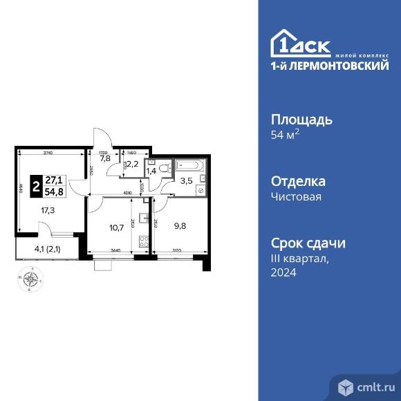 2-комнатная квартира 54,7 кв.м
