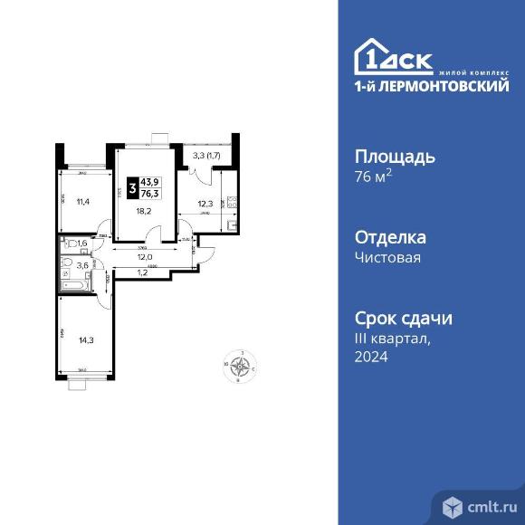 Перейти к актуальным объявлениям рубрики Квартиры. 3-комнатная квартира 76,3 кв.м