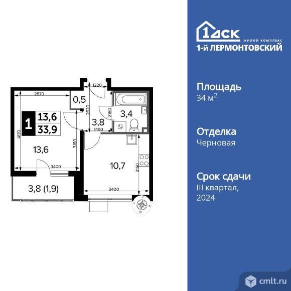 Перейти к актуальным объявлениям рубрики Квартиры. 1-комнатная квартира 34,1 кв.м