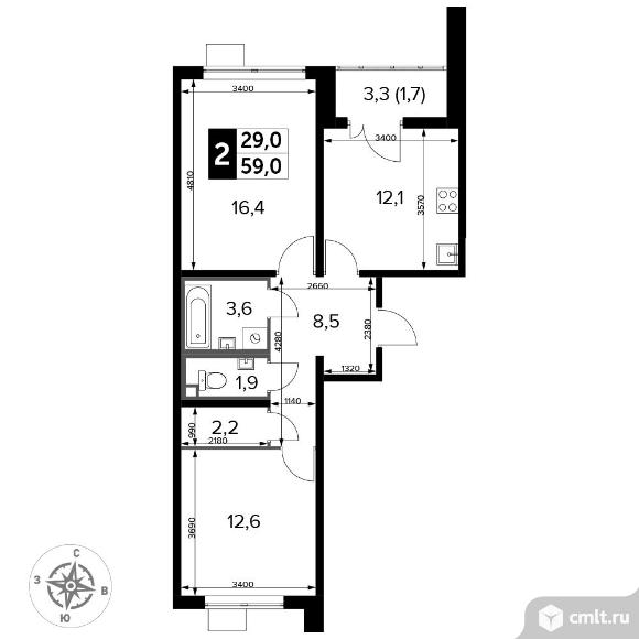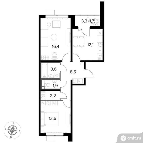Перейти к актуальным объявлениям рубрики Квартиры. 2-комнатная квартира 58,9 кв.м