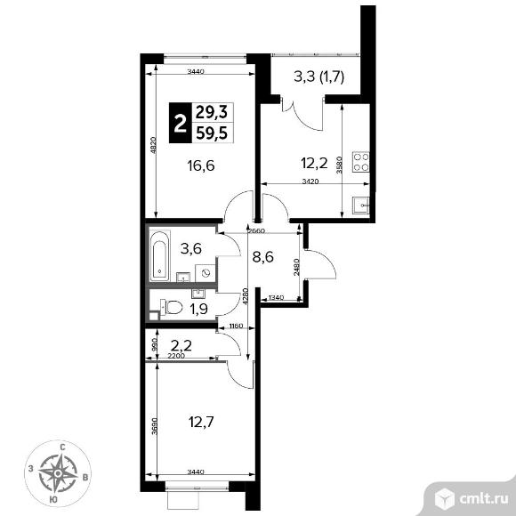 Перейти к актуальным объявлениям рубрики Квартиры. 2-комнатная квартира 59,5 кв.м