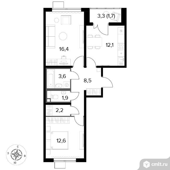 Перейти к актуальным объявлениям рубрики Квартиры. 2-комнатная квартира 58,9 кв.м