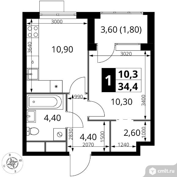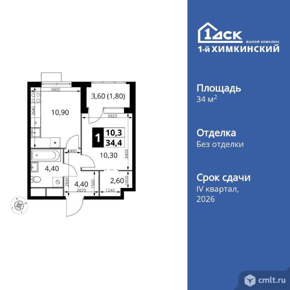 Перейти к актуальным объявлениям рубрики Квартиры. 1-комнатная квартира 34,4 кв.м