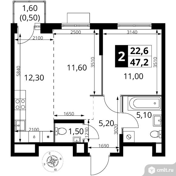 Перейти к актуальным объявлениям рубрики Квартиры. 2-комнатная квартира 47,2 кв.м