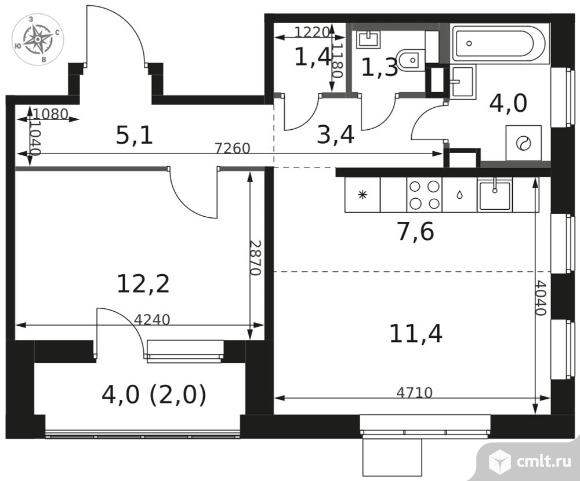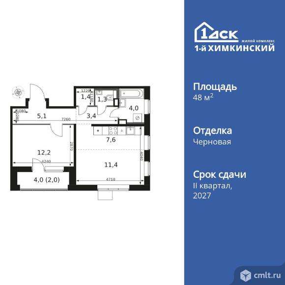 Перейти к актуальным объявлениям рубрики Квартиры. 2-комнатная квартира 48,4 кв.м