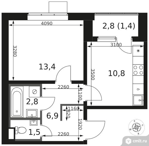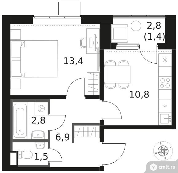 1-комнатная квартира 36,8 кв.м