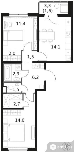 Перейти к актуальным объявлениям рубрики Квартиры. 2-комнатная квартира 57,9 кв.м