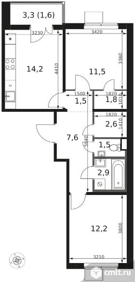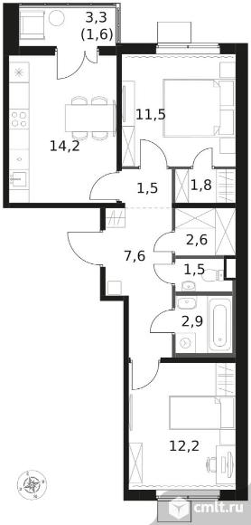 2-комнатная квартира 57,4 кв.м