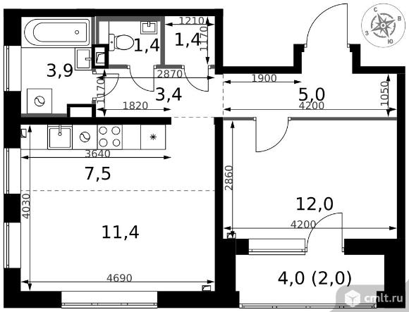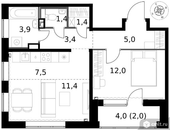 2-комнатная квартира 48 кв.м