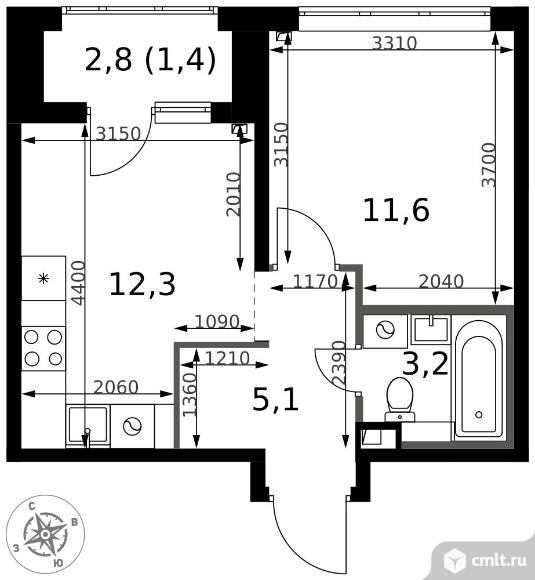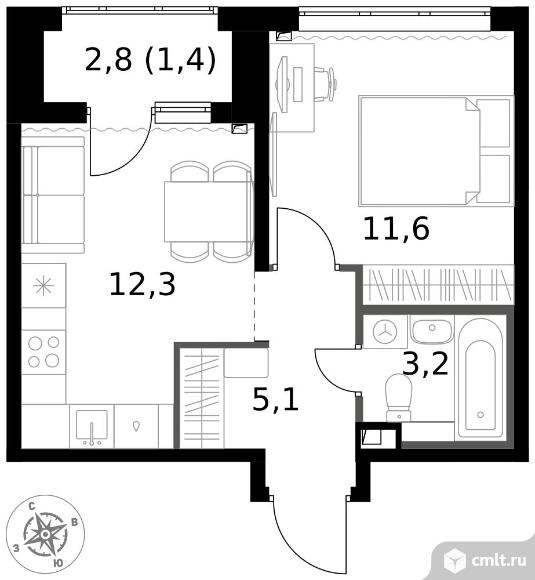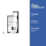 1-комнатная квартира 33,6 кв.м