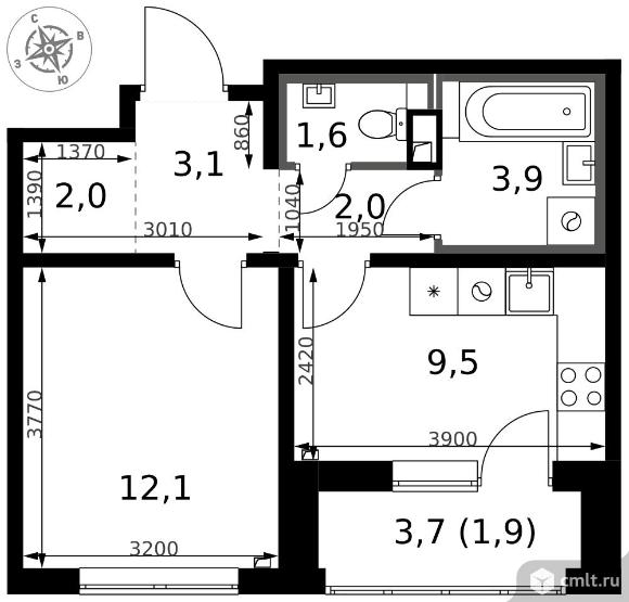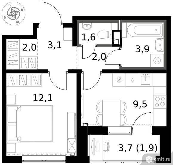 1-комнатная квартира 36,1 кв.м