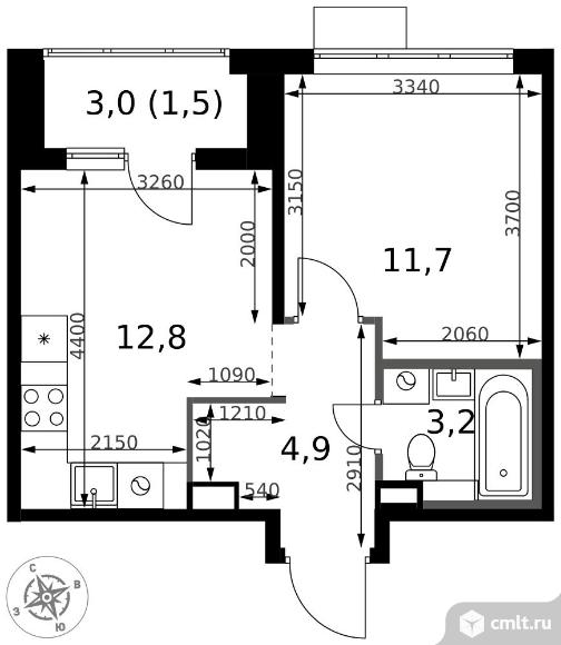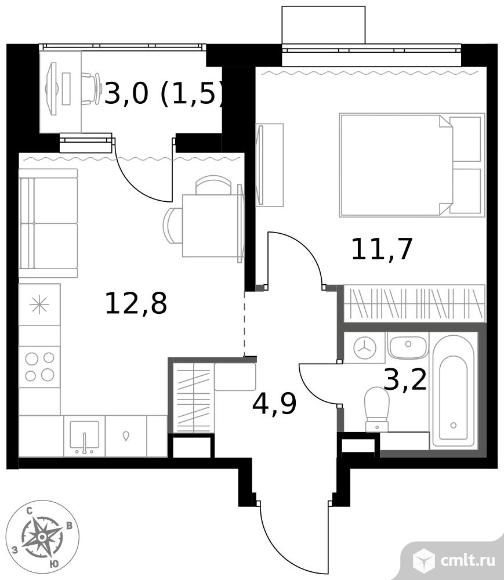 1-комнатная квартира 34,1 кв.м