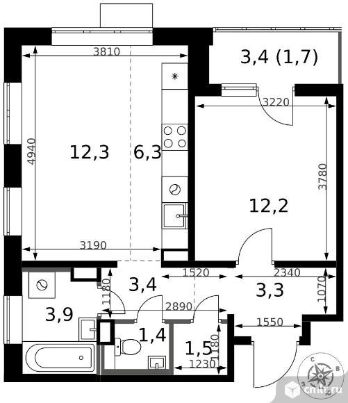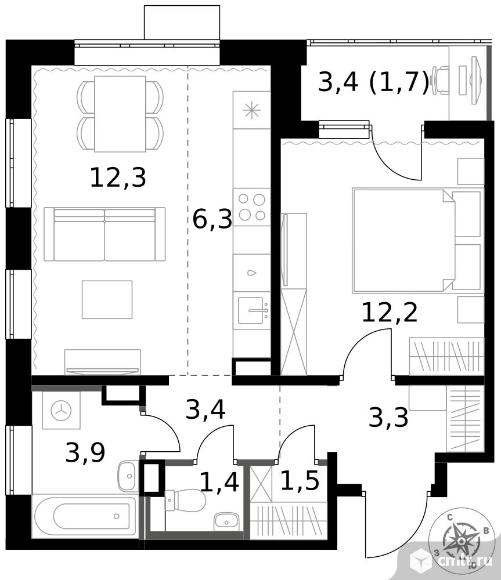 2-комнатная квартира 46 кв.м