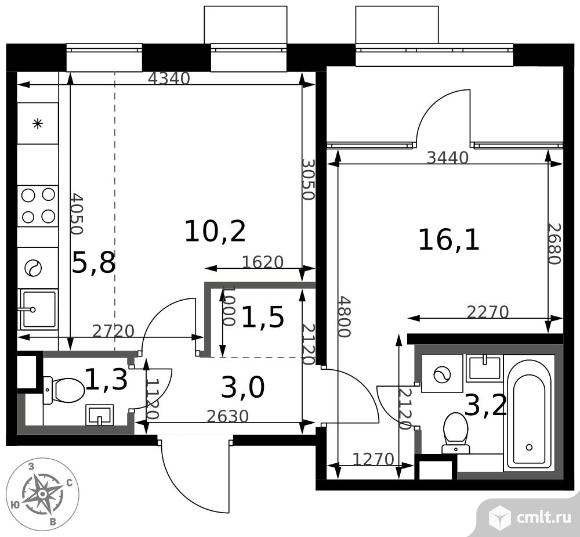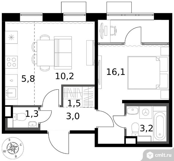 2-комнатная квартира 41,1 кв.м